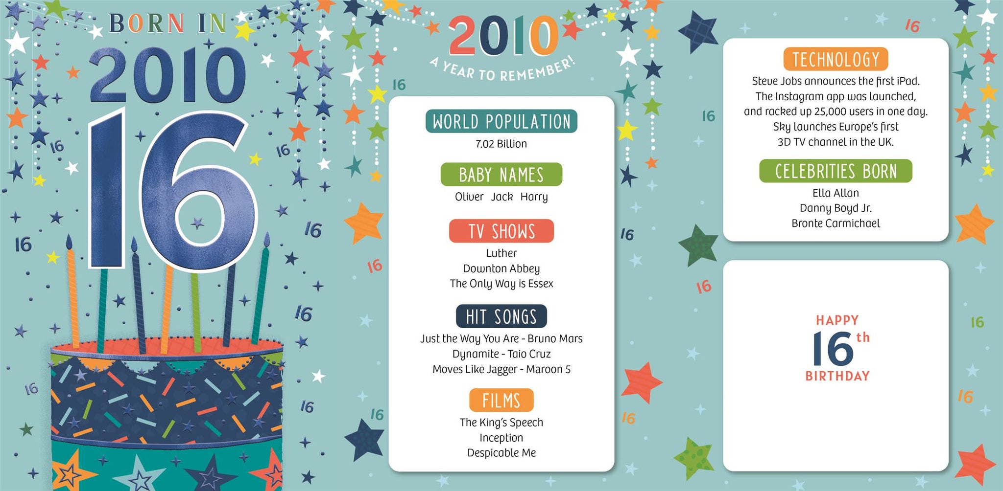 These fantastic 16th birthday cards feature loads of interesting facts about the year 2010.