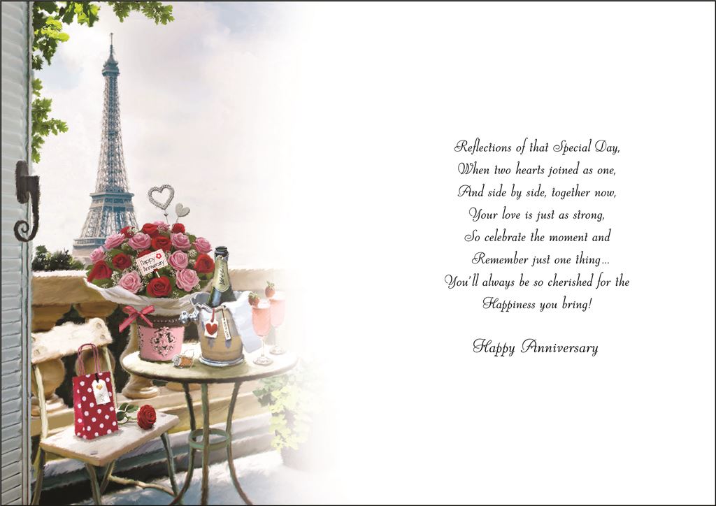 Hugely popular and highly sought after, Jonny Javelin greetings cards match intricate artwork with beautiful sentiments in every card. This card has a romantic backdrop of the Eiffel tower.