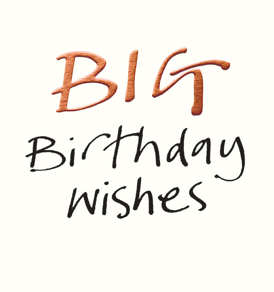 This lovely little birthday card features black and copper brush script that reads "BIG Birthday wishes".
