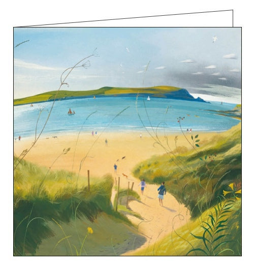 This beautiful blank greetings card features artwork by Nicholas Hely Hutchinson showing a view of Saunton Sands in Devon on a sunny day.