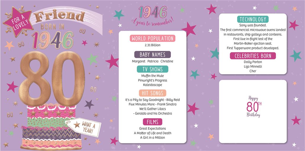 These fantastic 80th birthday cards feature loads of interesting facts about the year 1946