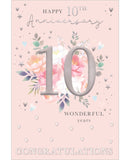 The heartfelt message on the front reads: “Happy 10th Anniversary...10 wonderful years.” The perfect card to honour such a special milestone.