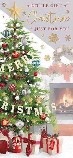 Give the gift of choice this festive season with this elegant Christmas money wallet. The design shows a beautifully decorated Christmas tree in a cosy living room. The front caption reads “A Little Gift at Christmas, just for you”.