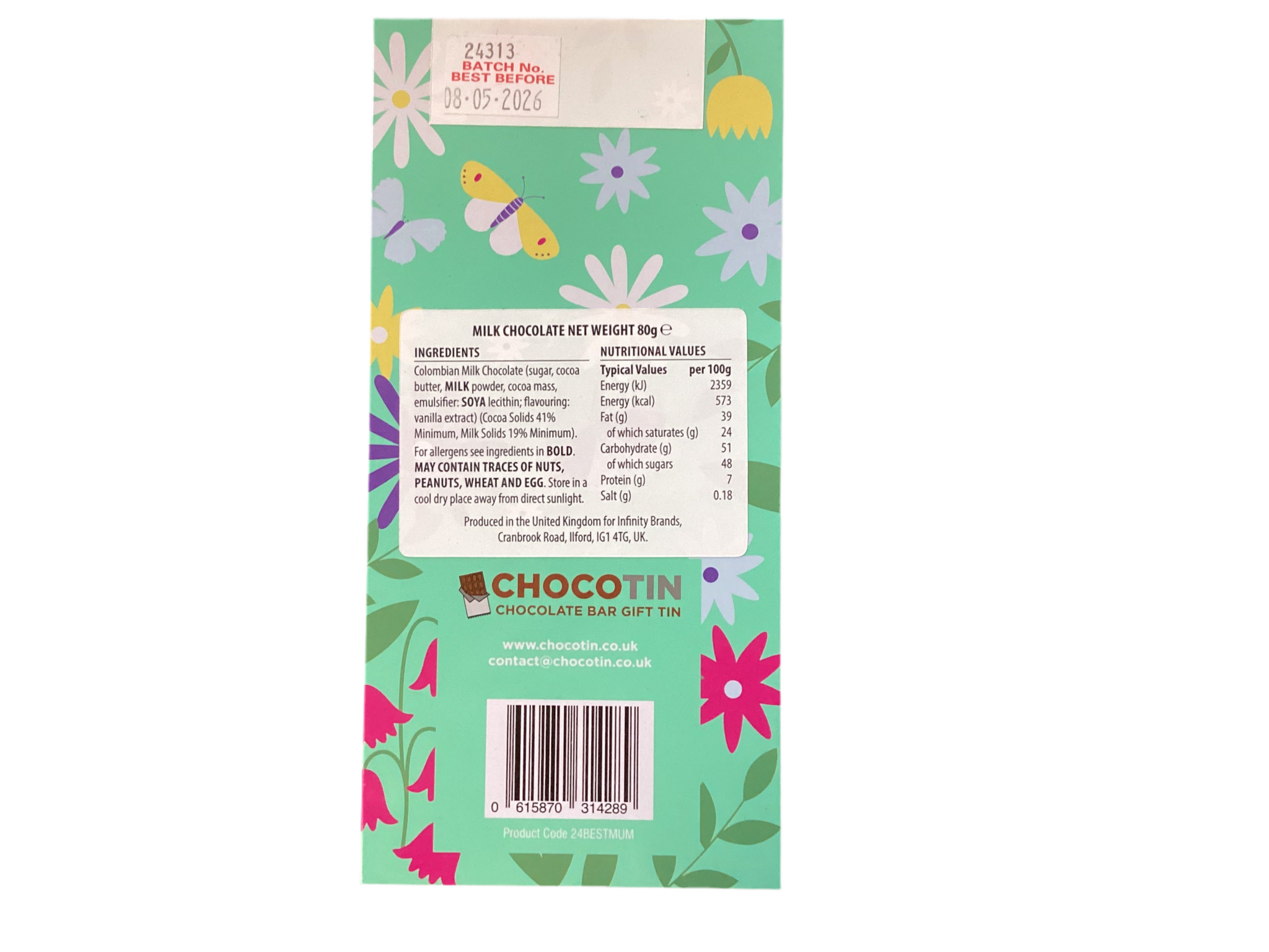 Yummy milk chocolate in a slim keepsake tin for your favourite Mum. Made in the UK.