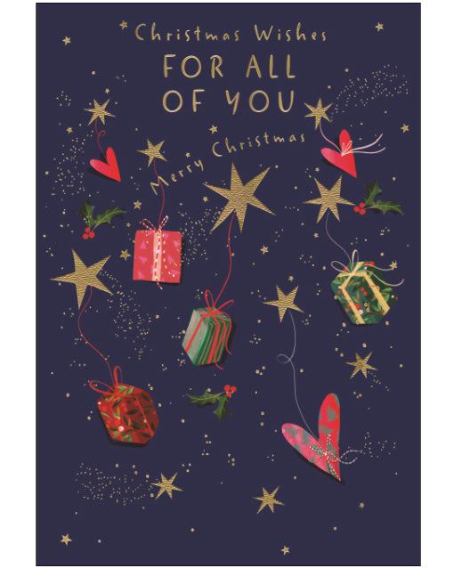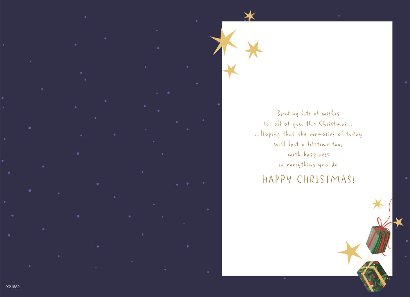"Sending lots of wishes For all of you this Christmas Hoping that the memories of today Will last a lifetime too, With happiness In everything you do Happy Christmas" |