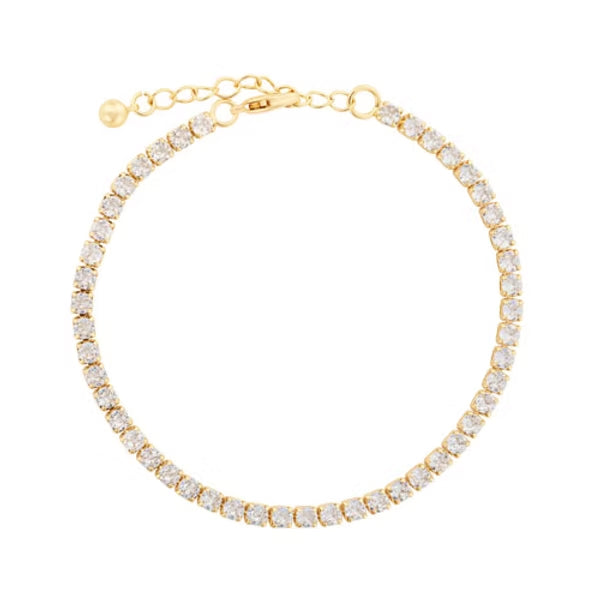 New from Indulgence Jewellery, this elegant bracelet is composed of a chain of tiny cubic zirconia crystals in gold-plated settings, perfect for adding a touch of glamour to any outfit. Its classic, minimalist design makes it ideal for both everyday wear and special occasions.
