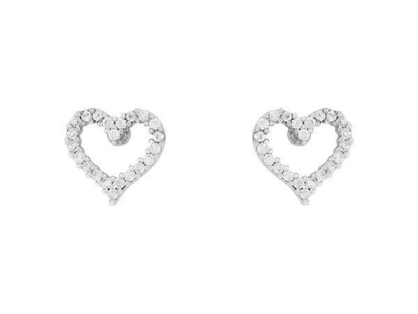 New from Indulgence Jewellery, this elegant pair of rhodium-plated heart shaped earrings are studded with tiny cubic zirconias add a refined, classic touch to any outfit. The earrings measure approx 1cm x 1cm and come with a secure stud back.