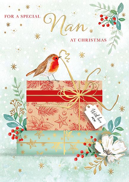 Make your Nan’s Christmas extra special with this beautifully illustrated Christmas card for a special Nan. The charming design features a sweet robin tying a bow on a festive Christmas present. The heartfelt caption on the front reads “For a Special Nan at Christmas" making it the perfect way to share warm sentiments and seasonal joy.
