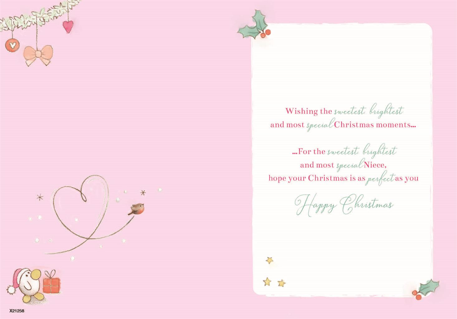 "Wishing the sweetest, brightest... ...And most special Christmas moments for the sweetest, brightest And most special Niece, Hope your Christmas is as perfect as you Happy Christmas" |